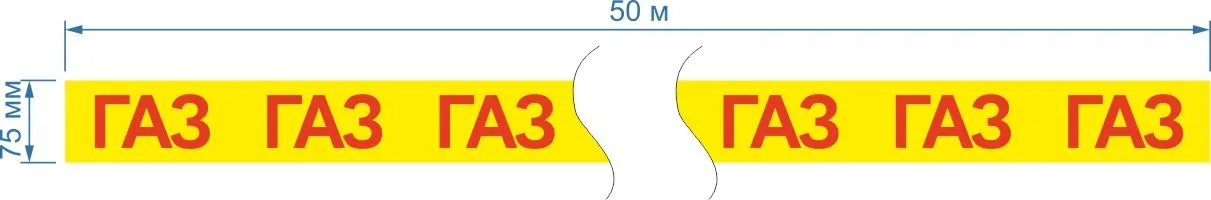 Опознавательная маркировочная лента желтая с красной надписью ГАЗ 75мм x 50м