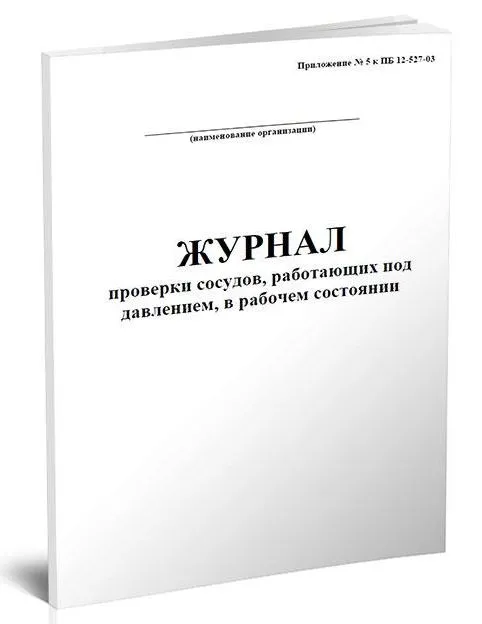 Форма журнала проверки сосудов, работающих под давлением, в рабочем состоянии соответствует Приложению 5 к Постановлению Госгортехнадзора РФ от 04.03.2003 N 6 "Об утверждении Правил безопасности при эксплуатации автомобильных заправочных станций сжиженного газа" (ПБ 12-527-03) в настоящее время отмененного.
