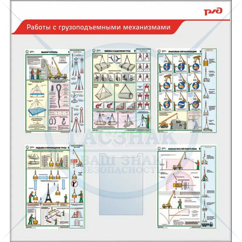 Стенд информационный с перекидной системой А2, с фиксаторами, с наполнением 12 плакатов А2 (3 пл А2 Средства защиты в электроустановках, 3 пл А2 Использование страховочных поясов, 3 пл А2 Работы на высоте, 3 пл А2 Строительные леса) РЖД (1100х850; Пласт
