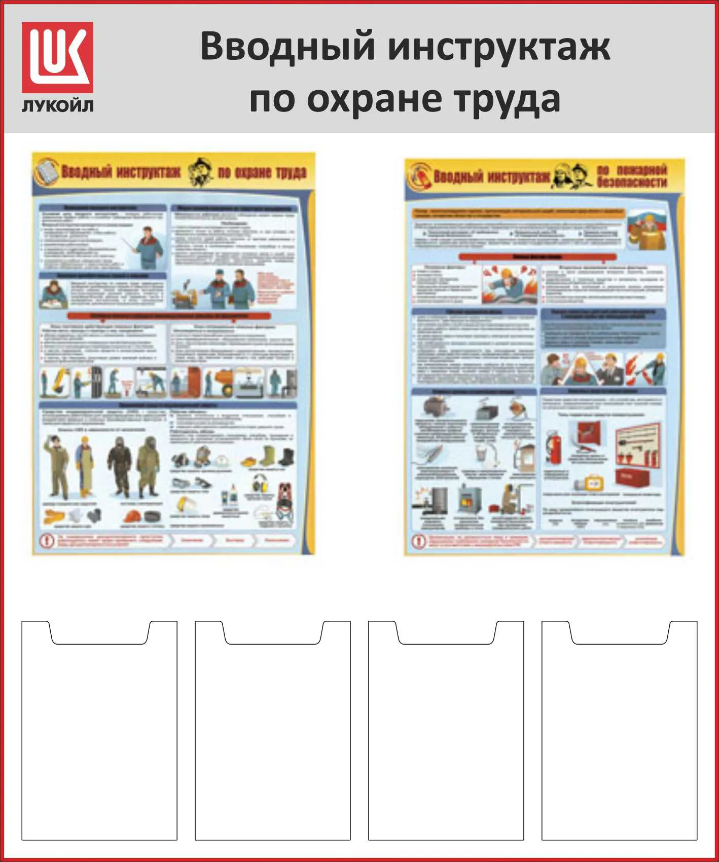 Стенд Охрана труда, 6 плоских карманов А4, фриз с надписью и логотипом Газпром. (1000х1000; Пластик ПВХ 4 мм; Пластик)