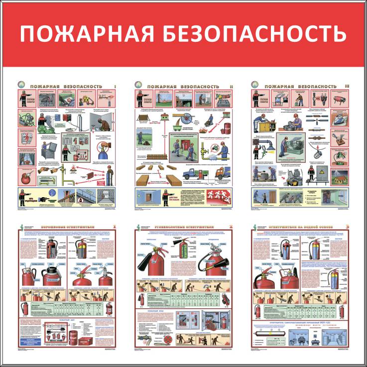 СтендПожарная безопастность, 6 плакатов А3 (1100х1200; Пластик ПВХ 4 мм, Алюминиевый профиль)