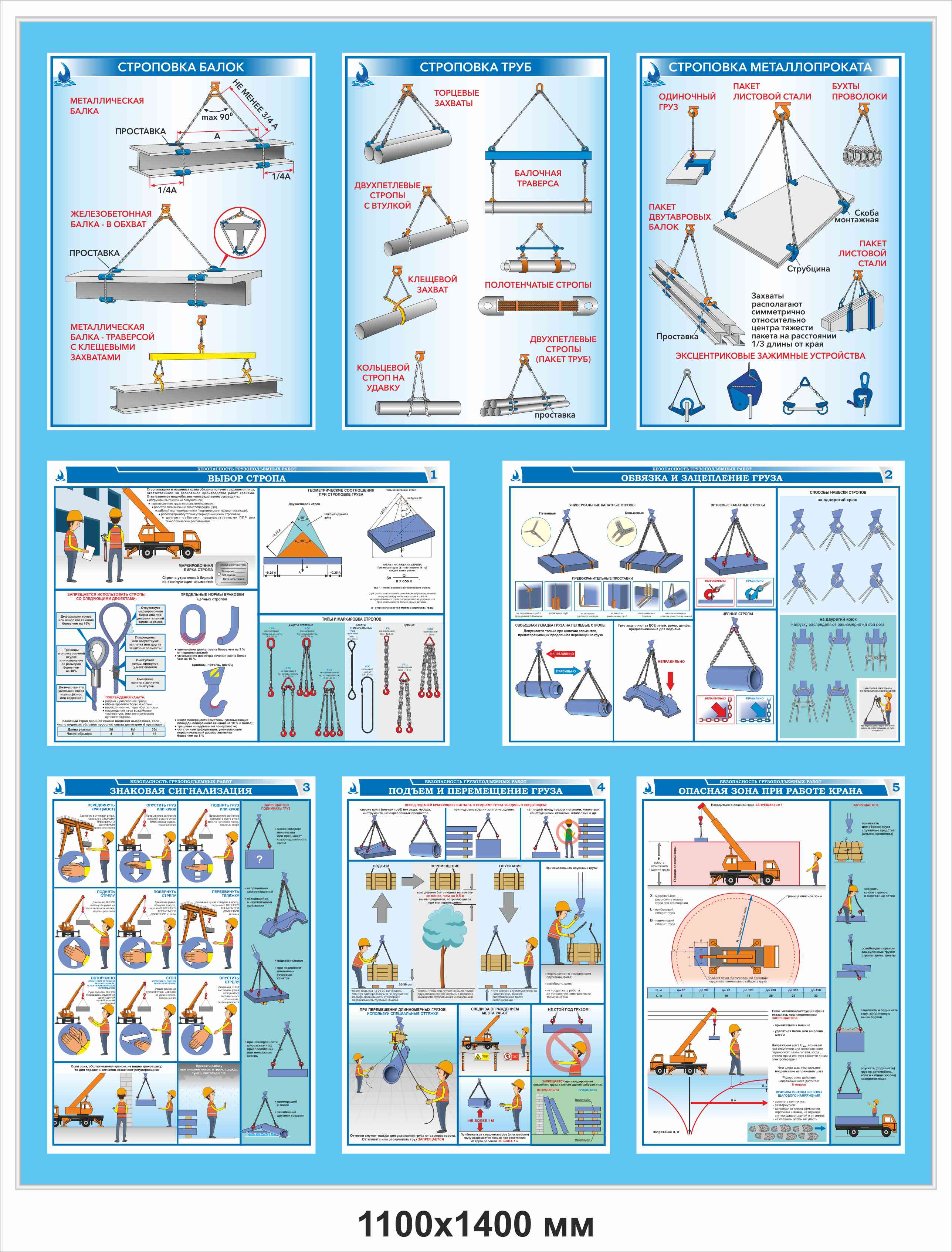 Стенд "Строповка и складирование грузов" с 8 плакатами ГАСЗНАК